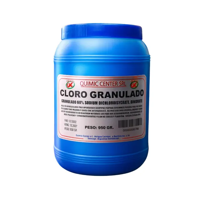 El cloro granulado para piscina es un compuesto desinfectante de alta concentración utilizado para mantener el agua libre de microorganismos dañinos como bacterias, virus y algas. Gracias a su presentación en gránulos, se disuelve fácilmente en el agua y actúa de forma inmediata, asegurando una desinfección eficaz y prolongada. Este producto ayuda a mantener el agua limpia, transparente y segura para los bañistas, evitando la aparición de malos olores y la formación de algas en las superficies. Es ideal para tratamientos de mantenimiento diario o para choques de cloración en momentos de alta demanda o contaminación. Su uso regular garantiza un equilibrio químico adecuado y prolonga la vida útil de los sistemas de filtración y revestimientos de la piscina.